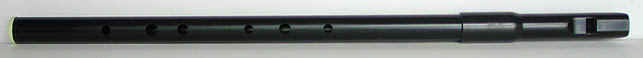 Irish flute with tapered-bore body (shown above). Has embouchure plate, although