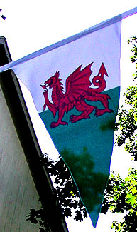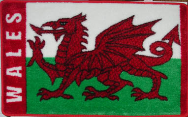 Welsh flag teatowel. Nice bright colors, properly fierce dragon outlined in black. Cotton. Size: about 29 1/2" long by 18 3/4" wide. $7 Out of stock.