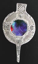PT34A (far left): This is an artist's realization of the the traditional Scottish sword-and-shield motif. Overall length is just over 3"; this could be worn as a cloak pin. Was $32, now $26.