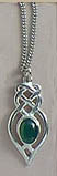 Celtic twist pewter necklace shown at left is in polished pewter with a large real gemstone at center.