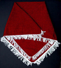 red-and-black traditional checked shawl is made of 100% cotton with nylon fringe